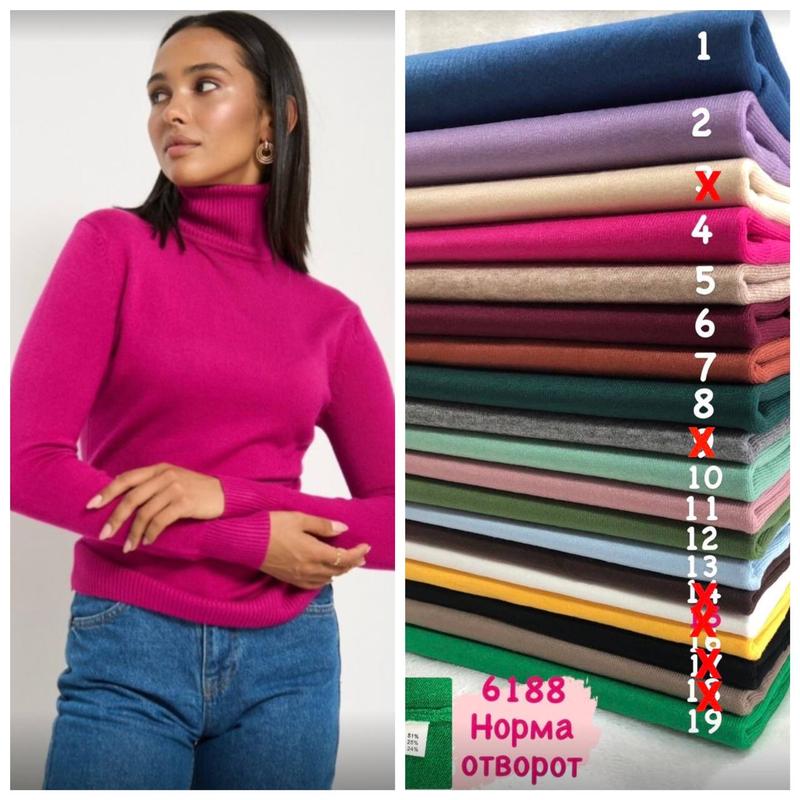 Гольф отворот(норма) Модель 6188 Ткань 24%кашемир, 51%хлопок, виск.волокно25% идеальное сочетание качества 👌👌👌 Размер, один универсальный 42-48 полуобхват груди 45см., длина без отворота 56 см. +10см.свободно, горло 15см.