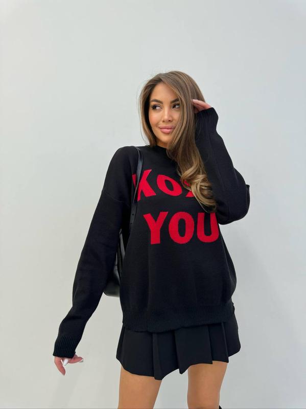 Новинка 🔥🔥🔥🔥🔥 Светр Арт. Кохаю виробництво Україна 100% бавовна Обмежена кількість Розмір універсал 42-50 Чорний з білим ,Чорний з червоним Сірий