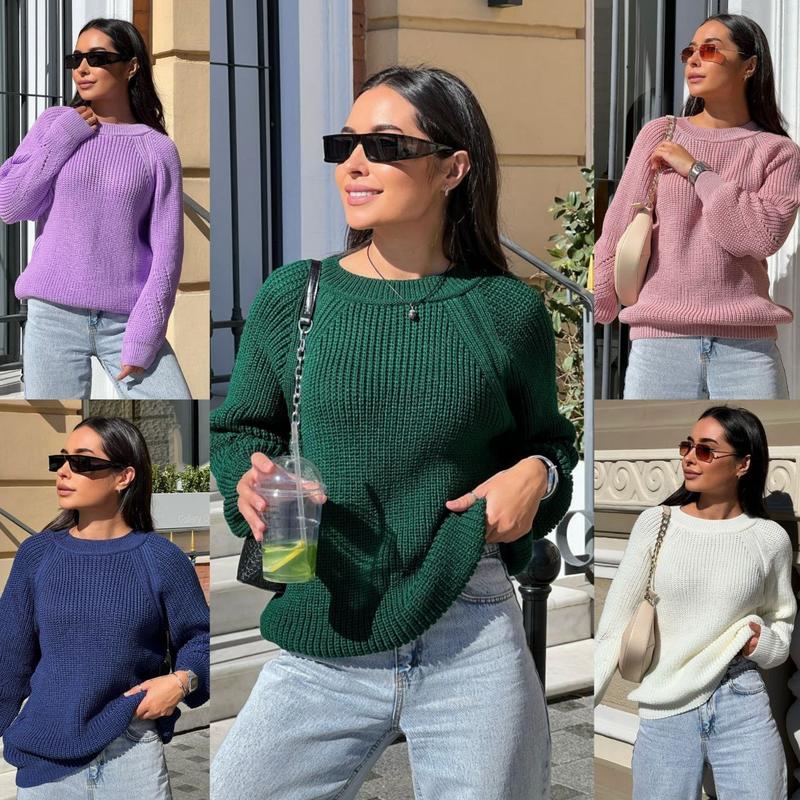 Светрик Модель 5018 modn Розмір універсал 42-48 Склад 30% акрил, 70% вовна Кольори: джинс, зелений, лаванда, молоко, пудра Заміри виробу в лежачому стані: - довжина 60 см; - ширина 48-56 см; - довжина рукава від горловини 67 см