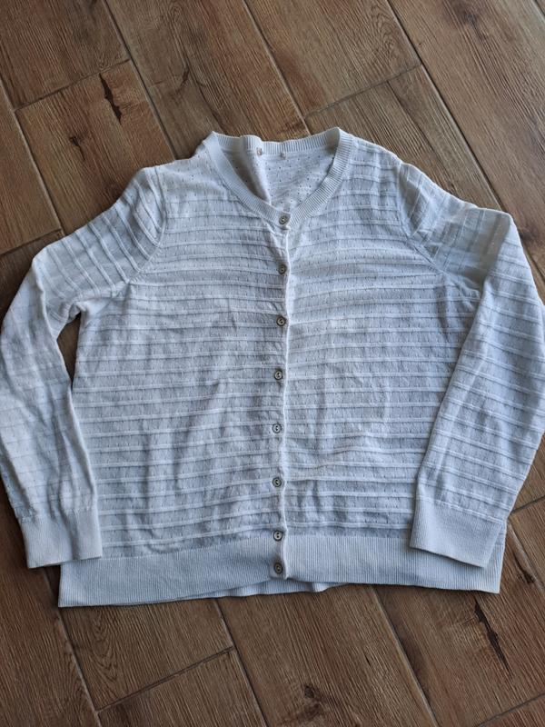 Класний кардиган. Відірваний лейбл. Всі заміри зроблені не в натяжку, тканина ще добре може нятягнутись Загальна довжина 62 см Ширина плечей 40 см Довжина рукава від плеча 60 см Довжина рукава від пахви 44 см Напівобхват грудей 55 см Напівобхват талії 55 см Напівобхват бедер 54 см