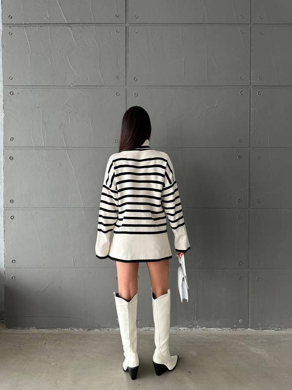 📸Новинка📸 Подовжений смугастик під горло з розрізами по боках хіт продажу 2023 р💎 Чудова якість 🇺🇿приємна до тіла # 0181 🫶Реал фото👌 ▪️Виробник Туреччина ▪️Колір чорний та білий ▪️Розмір єдиний 42-46 ▪️Склад Акрил 70%, Вовна 30% ▪️Ціна 680 грн 🔥