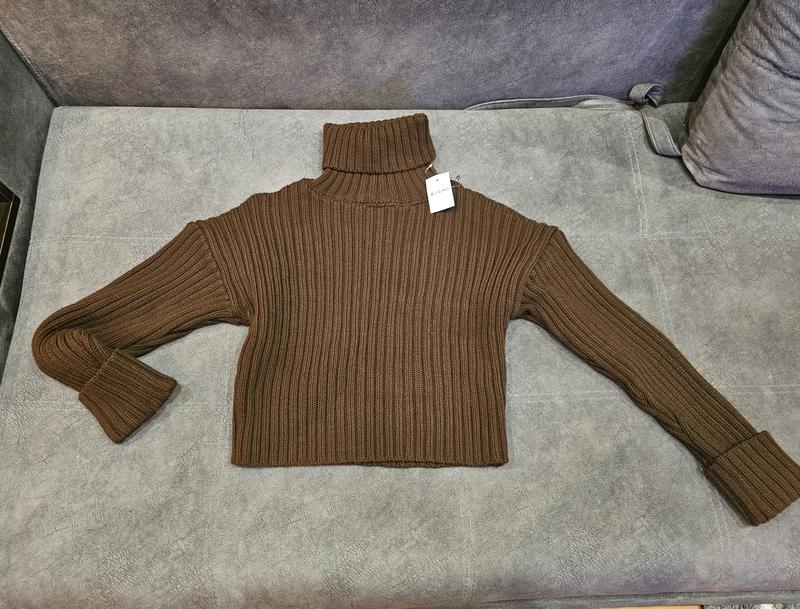 В'язаний укорочений светр, новий з біркою Бренд Famo Колір коричневий Склад: 100% акрил ОГ: 108 см Довжина: 45 см Довжина рукава: 45 см Розмір: one size