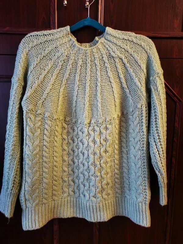 Яскравий та водночас спокійний колір в світері Mango. Одягнений декілька разів, зачіпок не має, стан ідеальний. Прослужить ще не один сезон. Хоч на біржі вказано розмір XS, але краще підійде на S-M. Я ношу М, фото на собі додаю.