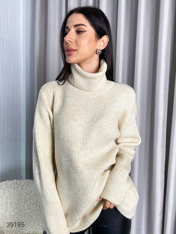 Жіночий светр у стилі оверсайз — це неперевершений вибір для стильного та зручного образу. Високий комір з відворотом і занижена лінія плечей надають йому елегантність та неповторний шарм. Розмір універсальний, ідеально підходить для 42-54 розміру. Використання в складі тканини 80% акрилу, 10% вовни і 10% поліестеру гарантує комфорт та тепло. Розмір: універсальний Кольори: сірий, чорний, світло-бежевий, зелений, блакитний, бежевий Заміри: Орієнтовні заміри по готовому виробу: універсальний 42-54 ОГ 125-135 без натягу, ОС 110-115 без натягу, довжина-63-70, довжина рукава від горл.-70 по внутр. шву-47, висота ворота-23