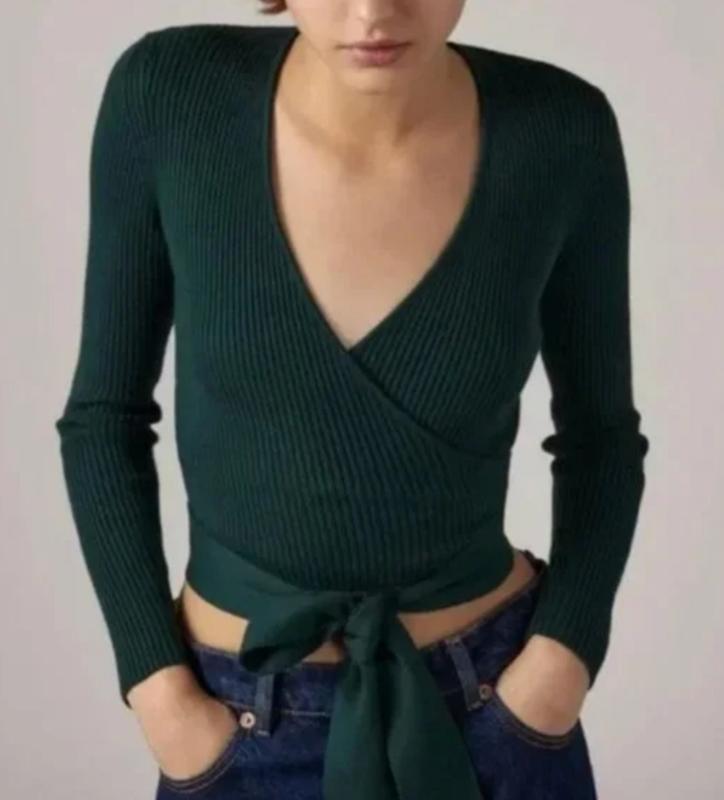 🌿 смарагдовий светр рубчик від Zara на запах,гарно тягнеться Розмір:М Заміри:ПО грудей 33 см, довжина 45 см, рукав 60 см