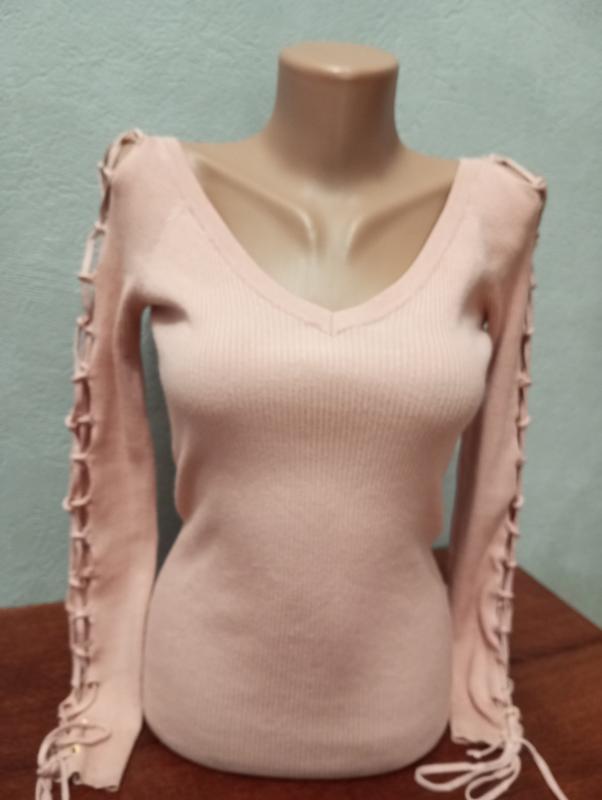 Дуже приваблива кофтинка в ідеальному стані.Виглядає дуже ефектно.Ніжного рожевого кольору.На розмір 44-46.