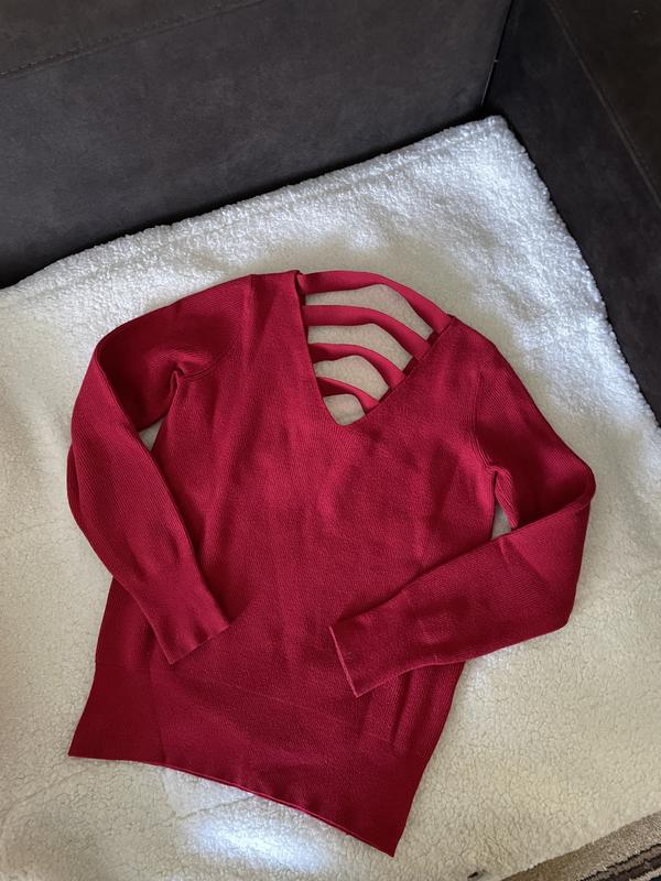 Красный свитерик с вырезом спереди и красивой открытой спинкой