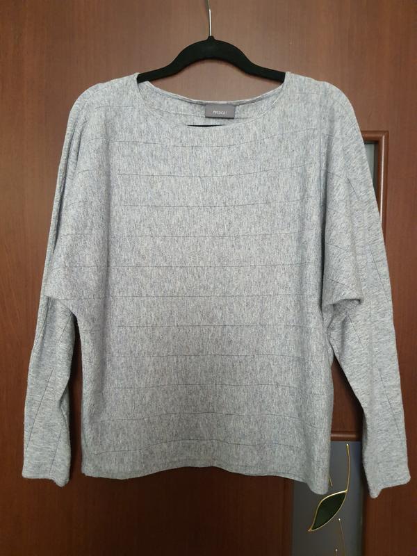 Красивый и стильный женский свитер серого цвета с рукавом летучая мышь. Заниженый прямой низ. Размер М. Состояние идеальное. Мягкий и приятный к телу. Будет сочитаться с любым образом. Замеры смотрите на фото.