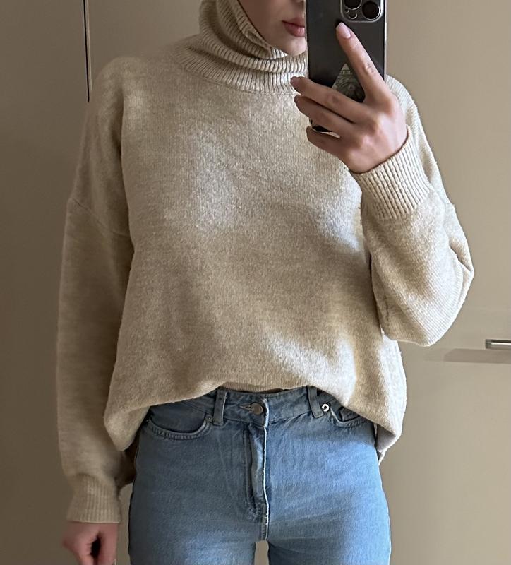 Свитер оверсайз, очень теплый , был одет 2 раза , подойдет от С-Л , Плечи 55 Грудь 128 Длина 59