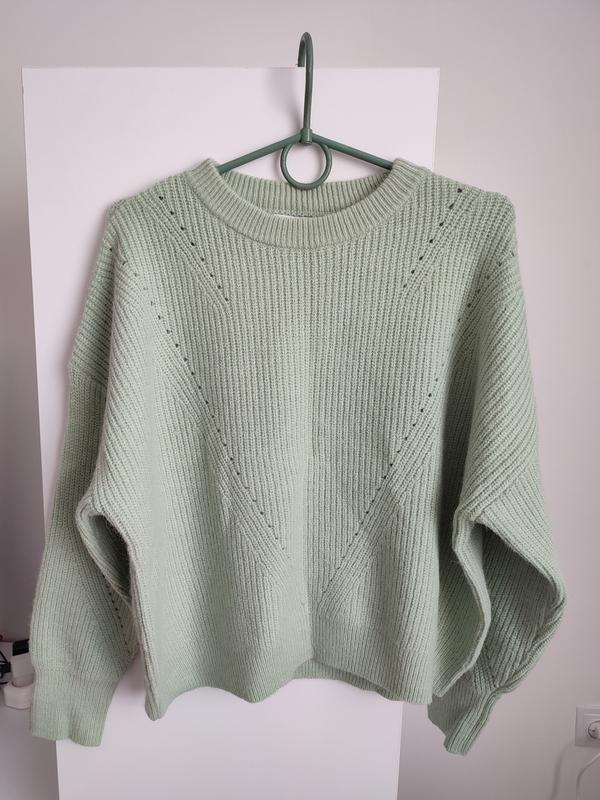 Новая кофточка, размер С-М, оверсайз. Цвет фисташковый Замеры: длина по спинке от горловины- 51см длина рукава от горловины - 70см обхват груди (замер самой кофты)- 126см