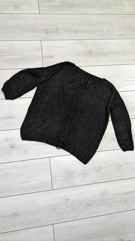 Светр ручної роботи з пряжі склад шерсть/ акрил з люриксом ( блиск ледь помітний), . Силует оверсайз , рукав 3/4 Ширина по грудях 56 см довжина від плеча 55 см довжина рукава від горловини 52 см ширина рукава 14 см вгорі, 8,5 внизу