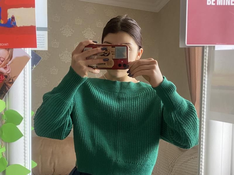 В'язаний светр із високим коміром та об'ємними рукавами. Дуже зручний та комфортний!)