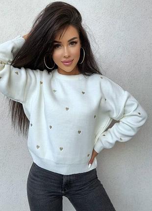Свитер Нежность ❤️ Размер единый 42-46 Мелкая машинная вязка с вышивкой Люкс качество❗️ 50% бавовна, 50% акрил Цвета черный и молоко Сердечки вышиты в цвете золото Производство Турция 🇹🇷 Все фото и видео РЕАЛ❗️ Цена 1070 грн