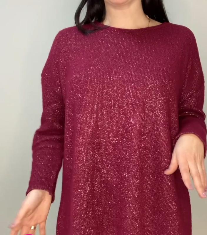 Ніжний ,м'ягусенький красивий ошатний бордовочервоного кольору ,камера не передае з люриксовою ниткою .Ног 63 см,довжина 63 см,розмір Италия не вказуе підійде на будь який розмір як оверсайс на меньший и на більшій.