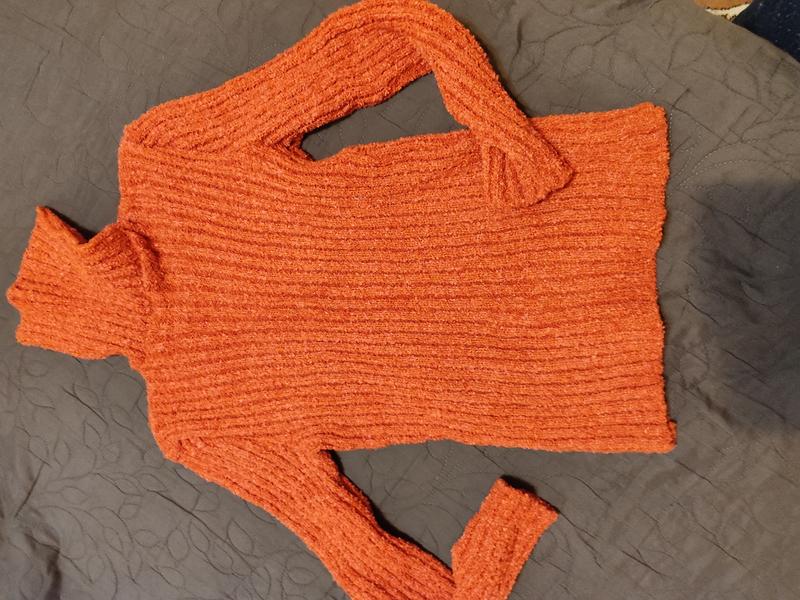 Колір цегляний , темніший, чим на фото. Фотографувала при штучному освітленні ввечері. Комір 20 см. Ширина в грудях 45-60. Довжина 63-66. Гарно тягнеться.