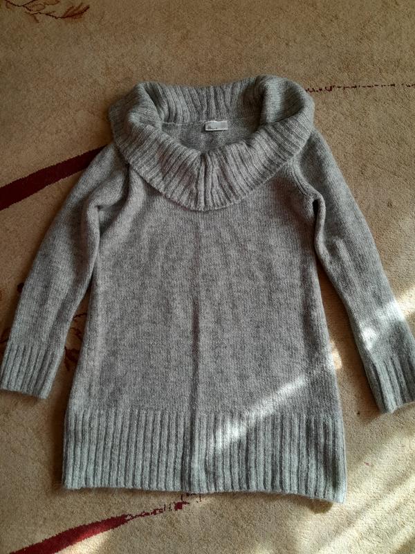 Удлиненный, теплый и приятный к телу свитер с красивой горловиной.