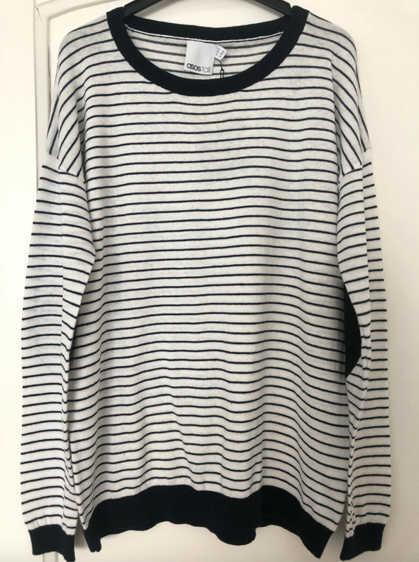 Светр ASOS у смужку білого/темно-синього кольору. Розмір L (UK12 US8 EU40) 100% бавовна Легкий трикотаж. Круглий виріз. Опущені плечові шви. Контрастна обробка та нашивки на ліктях Виміри ширина плеч 57см довжина рукав 53см ширина 56см довжина 67см Ціна 700грн