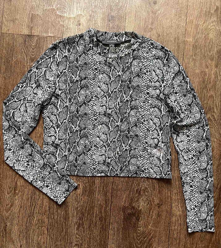 Кроп кофточка, лонгслів, напівпрозора, з принтом, фірми Primark, розмір М, довжина 46 см, напівобхват грудей 44 см, довжина рукава 61 см
