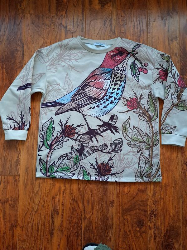 Крутий світшот з дуже гарним принтом, може бути як оверсайз Ширина плечей 62 см Загальна довжина 71 см Напівобхват грудей 60 см Напівобхват талії 60 см Напівобхват бедер 60 см Довжина рукава від пахви 47 см Якщо виникли додаткові питання - пишіть, або ж оформляйте замовлення і я якнайшвидше вам його надішлю 😉