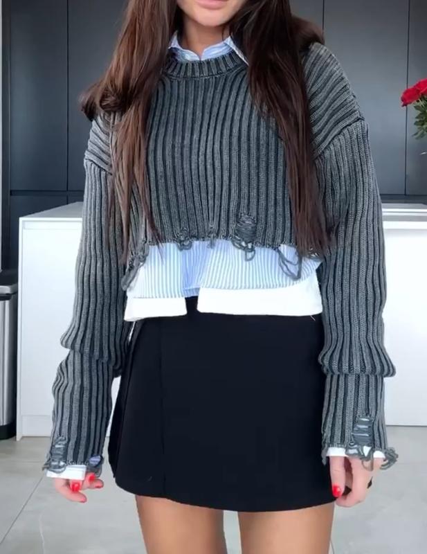 Укорочений рваний светр. Розміри: S, M, L. Колір: сірий.