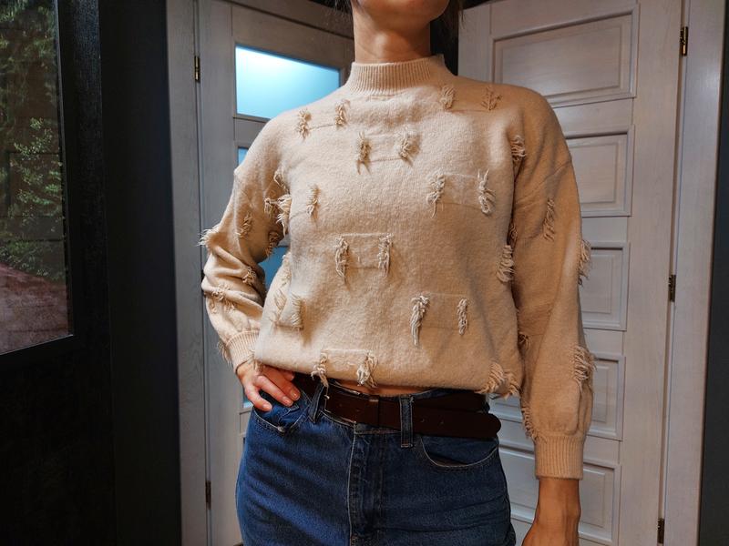 Светр бежевий S-M вільний смєсовий склад, вовна стильний,модний