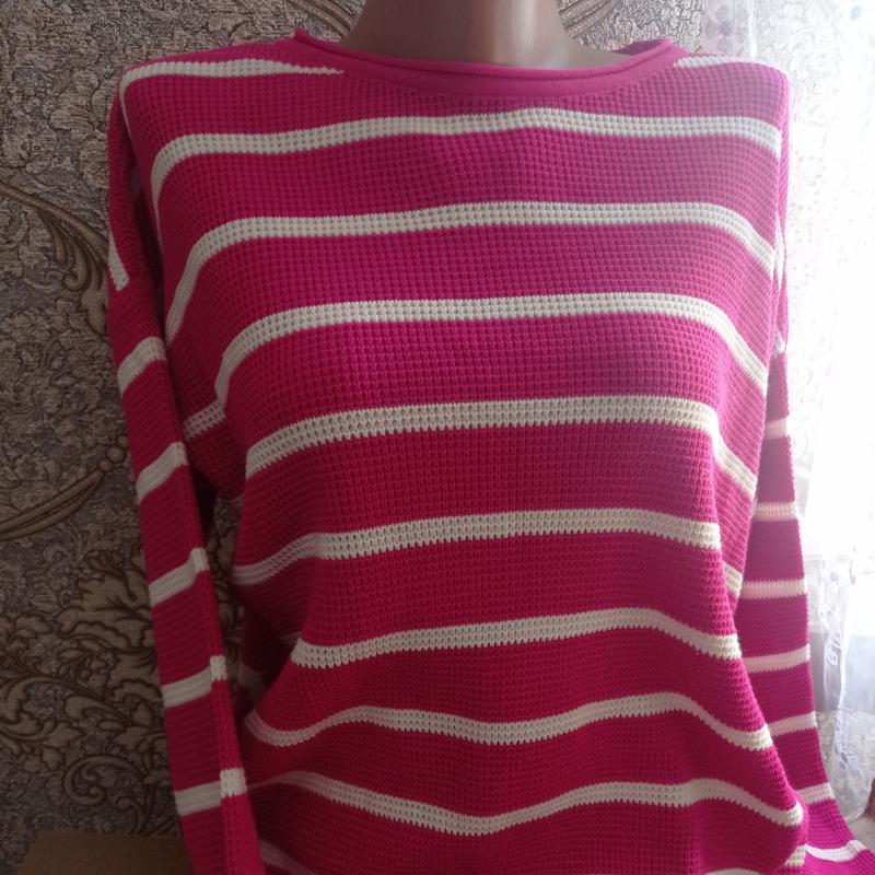 Стильна молодіжна жіноча кофта в полоску, дрібна в'язка. Розмір оверсайз (48-52)
