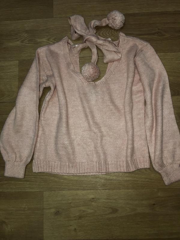 Свитер. Сзади завязки с бубонами. Красивый пудровый цвет. Замеры по запросу. Отвечу на все вопросы.