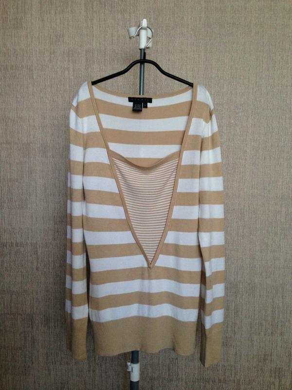 Новая кофта Ninety, размер L но может подойти и на M. Причина продажи, привозила из Америки для мамы и не угадала с размером. цвет - бежевый/белый; линия плеч - 40см; линия груди - 45см; длина рукава от плеча - 69см; длина по спине - 69см; ширина кофты по нижнему краю - 45см. На фотографии кофта на росте – 165, линия плеч – 37см, объем груди - 84см, объем талии – 62см, длина руки от плеча до кисти – 55см, объем бедер - 93см. На меня кофта велика в груди.