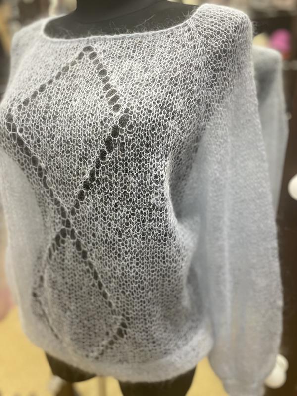 Светр павутинка handmade з преміального кідмахера в єдиному розмірі s-xl. Невагомий светр-хмаринка з обʼємними рукавами завжди доповнить Ваш стиль і зробить Вас неперевершеною 🫶 Заміри ОГ 110см, довжина 60 см, рукав на резинці з напуском. Власне виробництво. В наявності. Приймаємо і замовлення в кольорах.