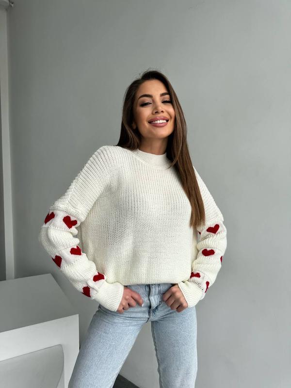 НОВИНКА Светр з сердечками/ з серденьками 💕 Модель:147 Розмір: oversize 42/46 Кольори: молоко , червоний та чорний Пряжа: акрил/вовна Ціна: 600 грн 🤗 ЗАМІРИ: Н/ог 55 см Довжина по спинці: 59 см Довжина рукава від шва: 50 см