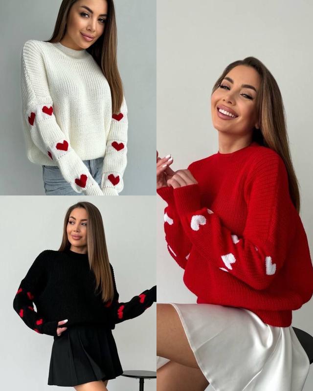 Светр 💕 Модель:147 osip Размер: oversize 42/46 Цвета: молоко, красный и черный Пряжа:акрил / шерсть ЗАМІРИ: Н/ог 55 см Длина по спинке:59 см Длина рукава от шва:50 см ОТПРАВКА в течение 2-4 дней!️ ❌БЕЗОПАСНОСТЬЮ ОПЛАТОЮ не отправляем