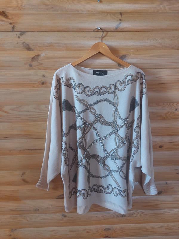Трикотажна кофтина.Трикотаж приємний на дотик, мякий. Стан відмінний.Бежевого кольору.Розмір батал 56-58.