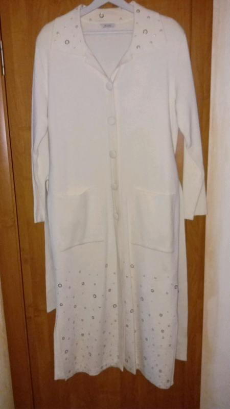 Виробник: Інший виробник Тип одягу: Кардигани новий кардиган,колір топлене молоко,якість трикотажу відмінна, по бокам висока шліца,кишені. заміри на фото вказані.пересилаю після оплати на карту.Наложеним та безпечною білу річ не відправляю.