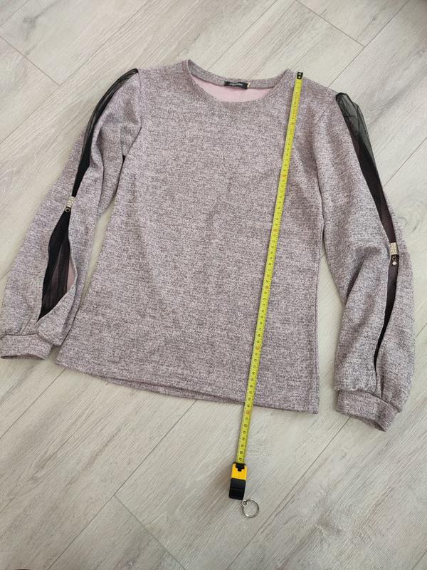 кофта отлично подойдет и к брюкам и к юбке на рукавах черные шифоновые вставки