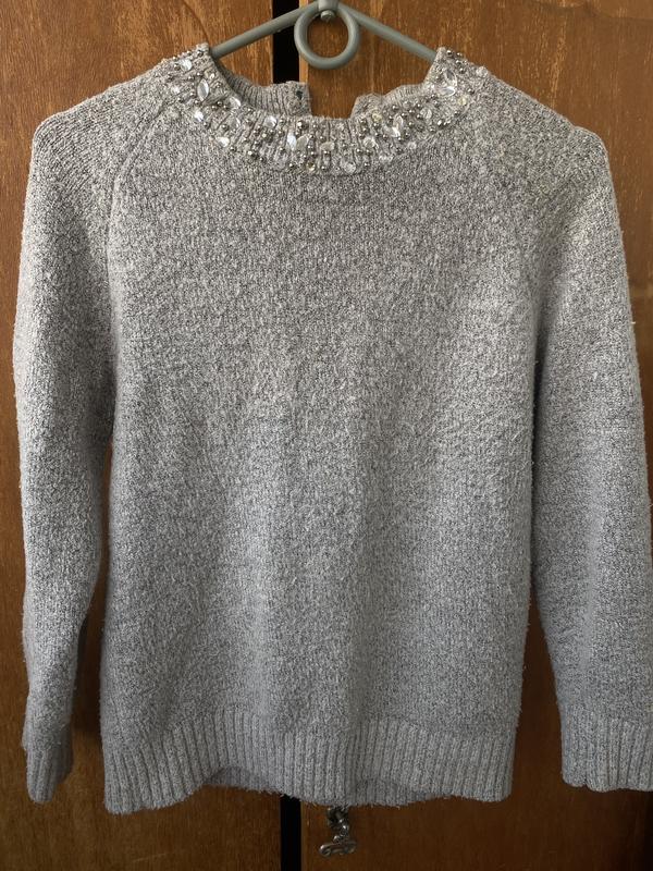 Женский теплый свитер, очень приятный к телу качество супер в хорошем состоянии, украшен камушками, цвет серый размер S