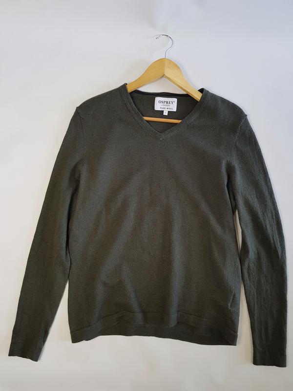 Тонкий светр зі 100% вовни мериноса Колір хакі Розмір вказаний L, може підійти і на М Довжина 63 Плечі 40 Рукав 66 ПОГ 50 Стан чудовий, без дефектів