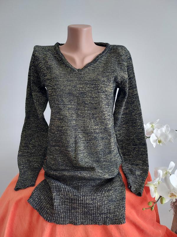 стан ідеальний. Розмір 44-46. В'язка трикотажна з золотистим люрексом