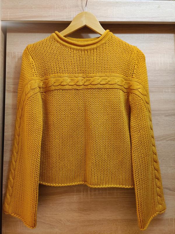 Теплий жовтий в'язаний светр, чудово зігріває взимку, м'який та приємний Довжина - 54 см Ширина - 41 см Довжина рукава - 57 см