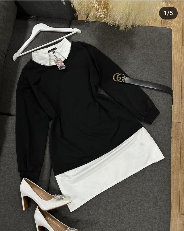 🖤🔥Стильно… елегантно… зі смаком… крута сукня-светр з сорочкою … родзинка в твоєму гардеробі/ нова/ Boohoo 16 р- йде на L/Xl Пог вільного крою до 60 см Пояс до 60 см Поб до 60 см Довжина 94 см