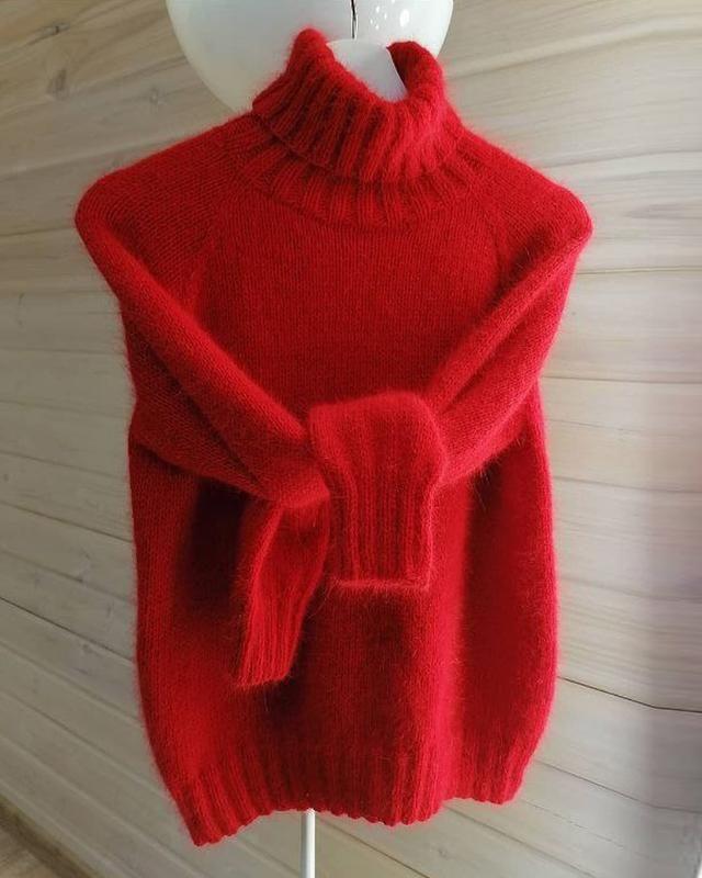 Светр в'язаний ангора ручна робота червона зима теплий