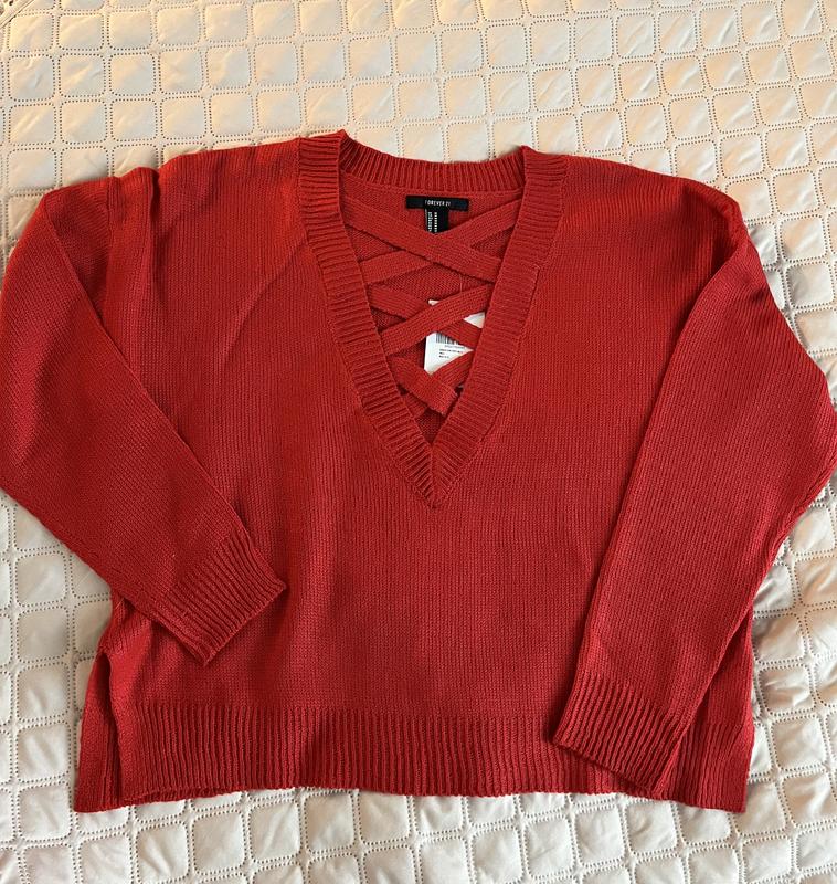 Новий світер, з цікавим вирізом, розрізи по бокам. Розмір М, але краще дивитись заміри. ПОГ - 57см, довжина 53см, рукав від горловини 71см.