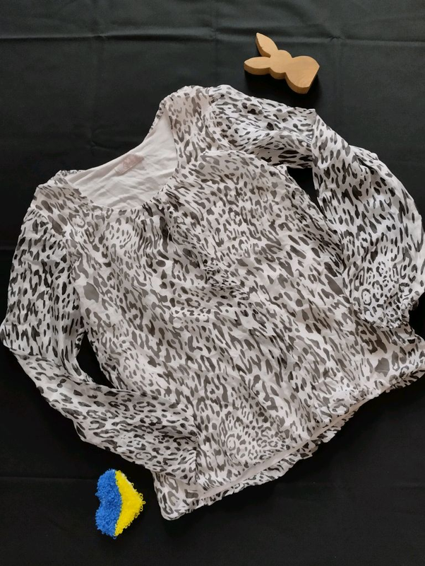 Виробник: Renner Italia Тип одягу: Інший тип одягу Блуза жіноча, Renee. Розмір S, 36. Матеріал віскоза, шовк. Тваринний принт. Стан відмінний. Без дефектів.