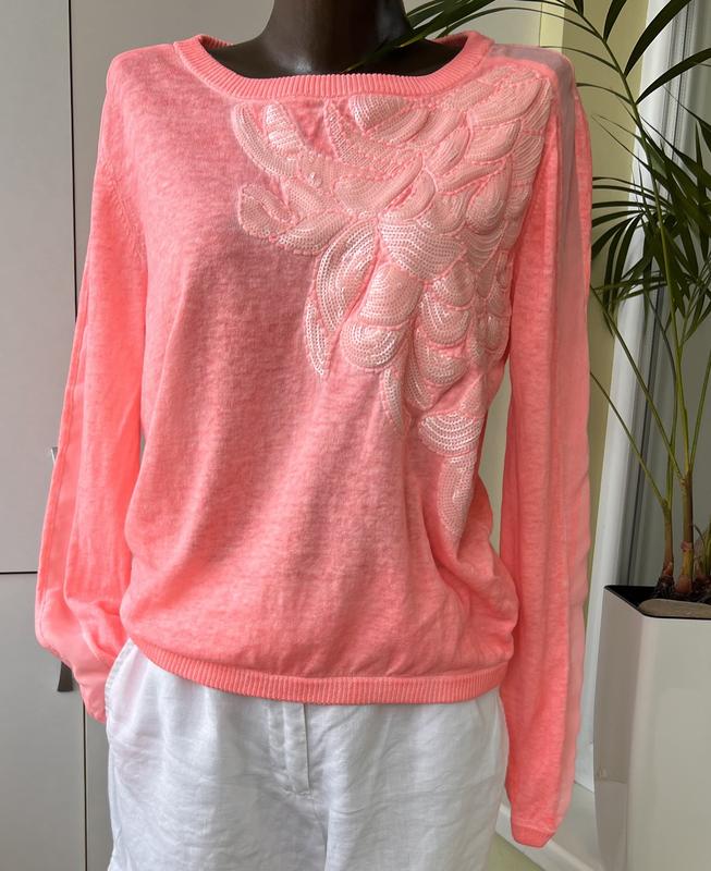 Светр Gustav р М. легкий склад 55 льон, 45 бавовна, з аплікацією із поеток, по рукавам та ззаду вставки шифону,