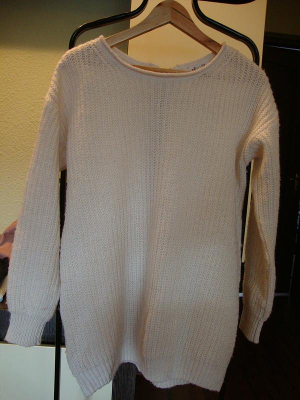 ззаду на всю спину замочок. підійде на розмір м,л. колір молочний, ПОГ 54см, довжина 72см, рукав від горловини 68см