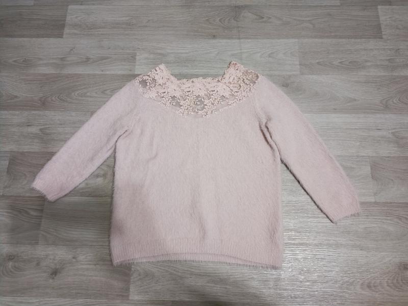 Светр Orsay S Длина 55 см Рукав от горла 52 см 3/4 Груди 47 см Низ 42 см Состав 65% полиамид/нейлон, 35 акрил Декор часть 90% коттон, 10% полиэстер