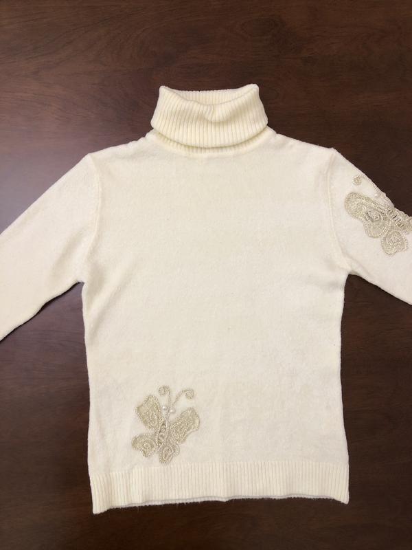 Симпатичний светрик на щодень. Заміри: пог -40см, тягнеться, пот- 36см, довжина від горловини - 49 см. Рукав 3/4.