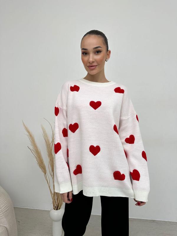 Светр сердечко Арт. 300 Виробництво Туреччина Мілка машинна вязка Щільна пряжа. Светр об'ємний, не тонкий. Гарна якість та лекало ------------------ ОГ- 60 см Довжина-68 см Рукав від горловини 68 см