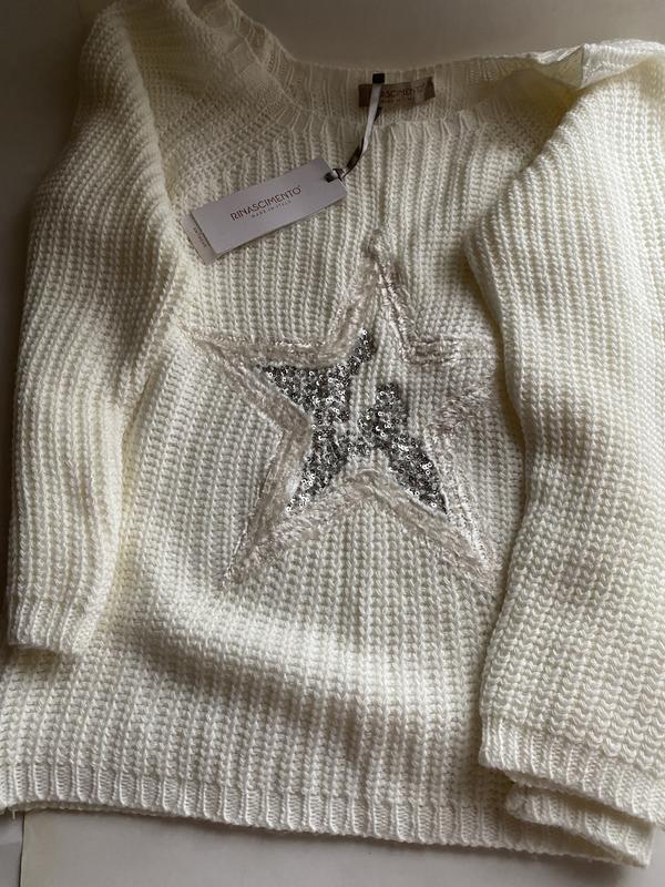 Дуже приємний на дотик,гарний італійський,,в живу ще краще чим на фото,зірочка в поетках,білосніжний