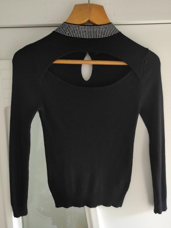Кофтинка з оздобленою стразами горловиною. Пог-34-40 Пот-30-36 Поб-30-40 Дуже гарно тягнеться Довжина-53 Дов.рукава від горловини-62