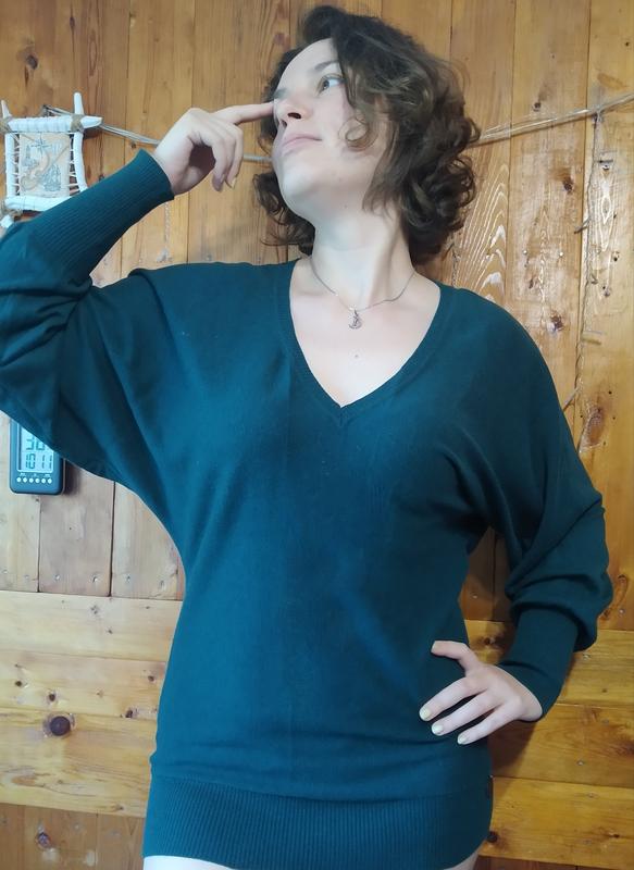 Шикарний светр, колір насичений зелений. 91% бавовна, 9% кашемір. Розмір М (мої габарити на фото 100-80-105) Довжина 70, ПОТ 40, ПОС 44, рукав від шиї 75 см